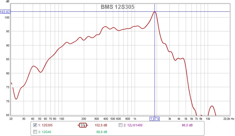 Le BMS et le 18’s vont se comporter d’une manière très proche avec un léger avantage pour le BMS qui demandera le moins de correction. Le Beyma va descendre presque autant mais avec beaucoup plus de niveau dans le medium. En actif il demandera donc une correction plus importante, environ 4db par rapport au deux autres, pour une écoute équilibrée. Si on souhaite filtrer ce haut-parleur en filtrage passif deux voies ce n’est pas facile à rattraper.