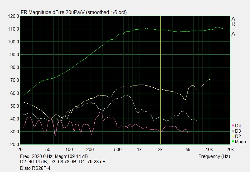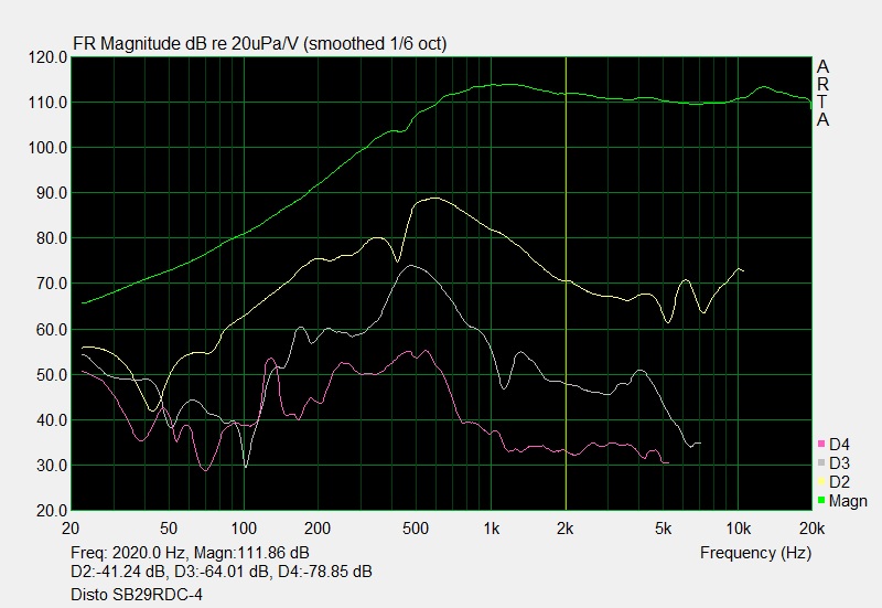 I know it is old test, but still relevant, but the Dayton tweeter is not longer available and new version is now introduced. Other than the levels not being similar between the speakers, it is of the very few to show intermodulation distortions. While I like Vance’s test in Voice coil, where he usually shows distortions test a two different levels, the harmonics are only 2nd and 3rd. He also doesn’t test the IMDs. So in fairness this one is much better. I have the Neo version of SB29RDC and it doesn’t like to be pushed below 3-3.5k, 24dB LR – it has much higher distortions than the big 29RDC, plus because of smaller chamber the distortions rise an octave higher. I actually think the ATOHM tweeter is still a good purchase if matched and in 8 ohm version can be more amplifier friendly.