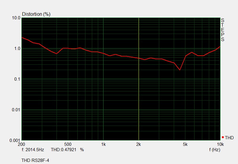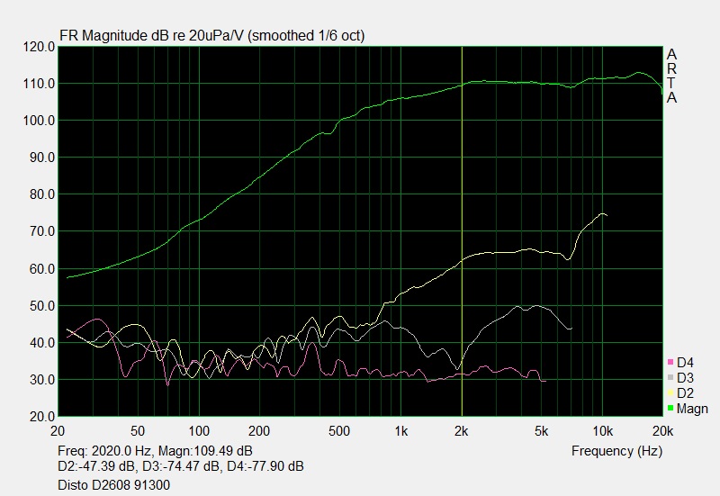 Je me pose la question de faire des FFT sur les prochains tests à des fréquences « critiques » comme celle dont tu parles et égalisées en niveau mais ce n’est pas forcément idéal non plus. Le but est aussi et surtout de voir la tendance générale des distos et le comportement global du haut-parleur.