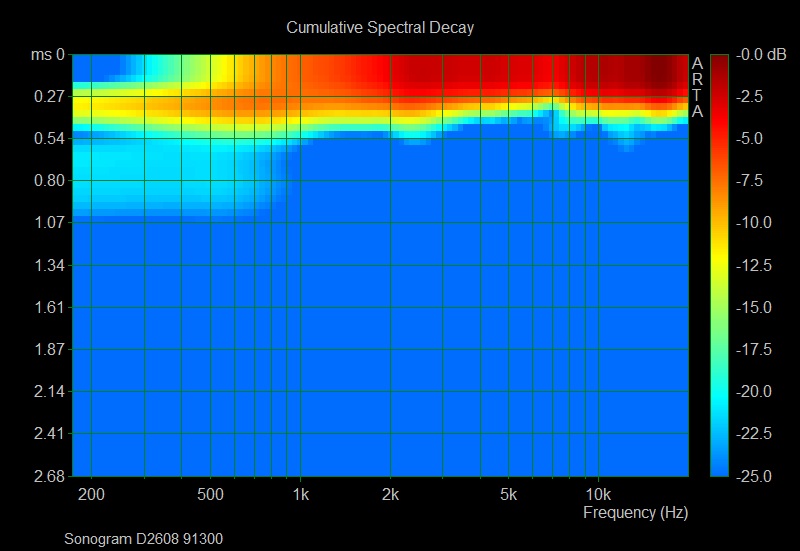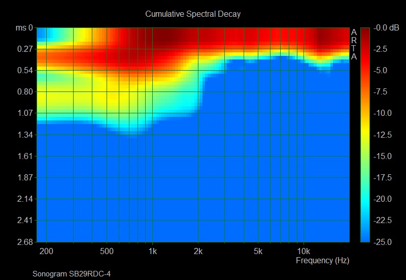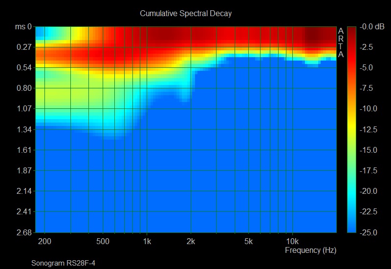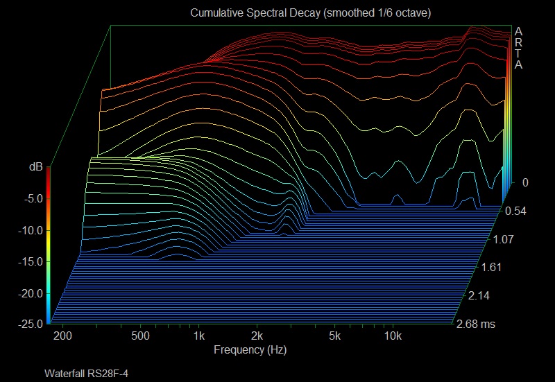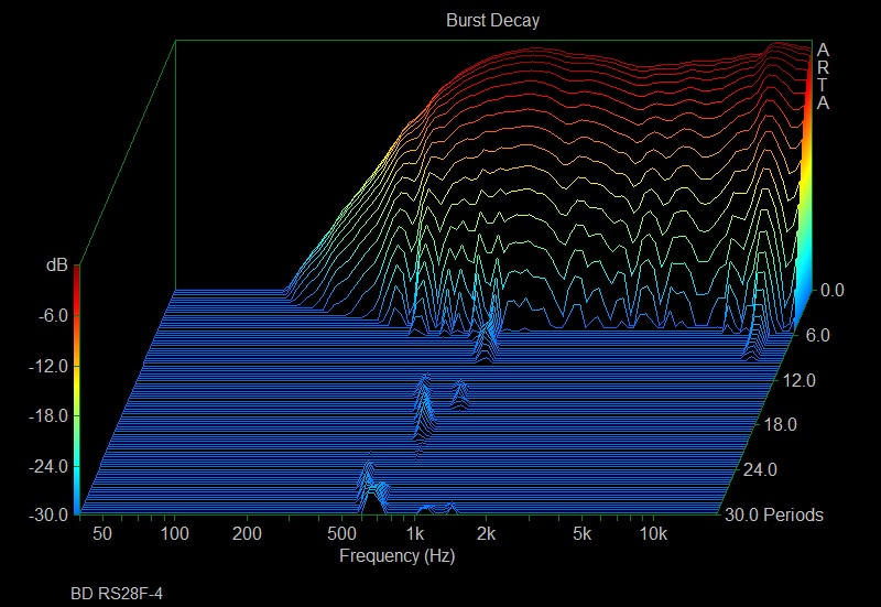 Il n’ya pas grand chose à noter sur ces CSD et les trois tweeters ont un comportement équivalent. On peut toutefois noter une légère résonnance en bas de bande passante pour le RS28F visible sur son Burst Decay