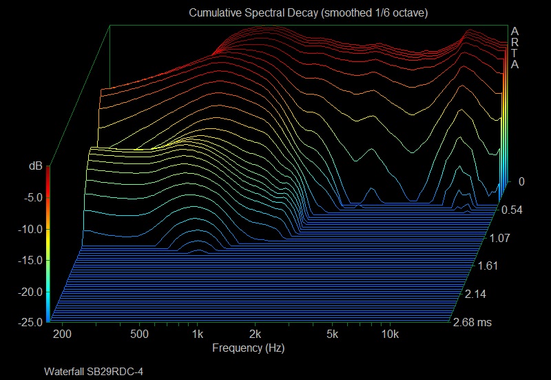 For some reason the sentence has gone missing. The tweeter I’m describing is neo version of 29RDC, the SB29RDCN – this tweeter likes 3k up 24dB acoustic, because of higher overall distortions and rising distortions from 3kHz down. Most likely the behavior is due to smaller chamber behind the dome.