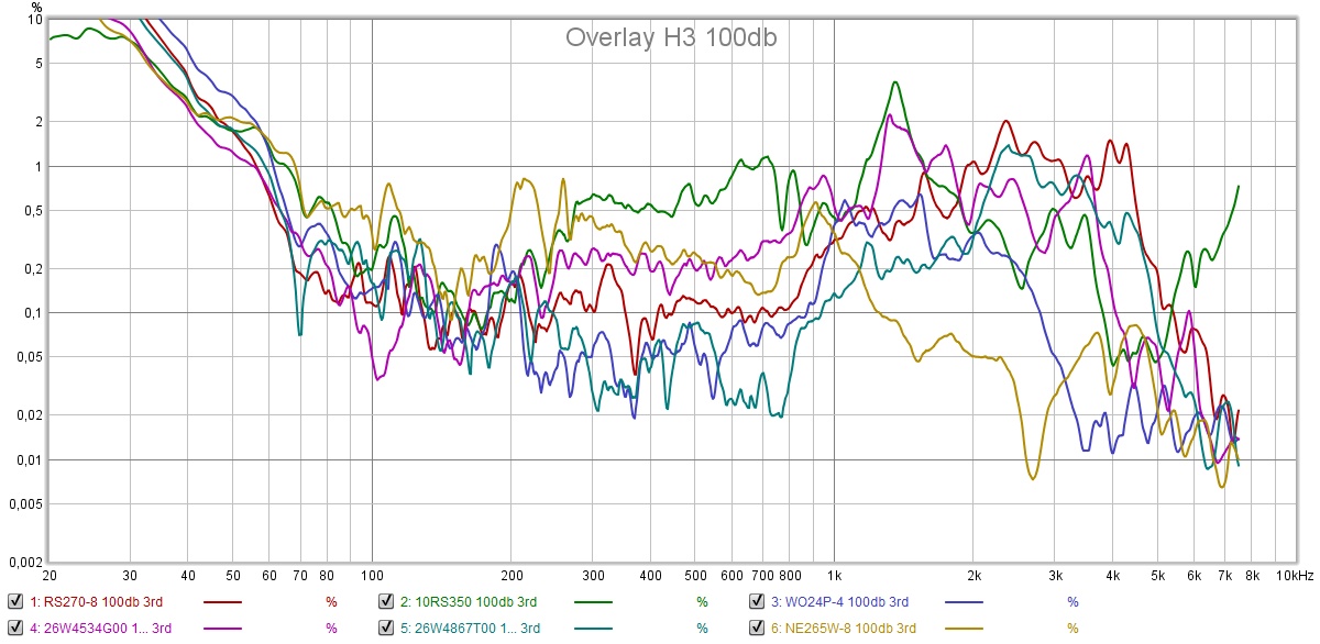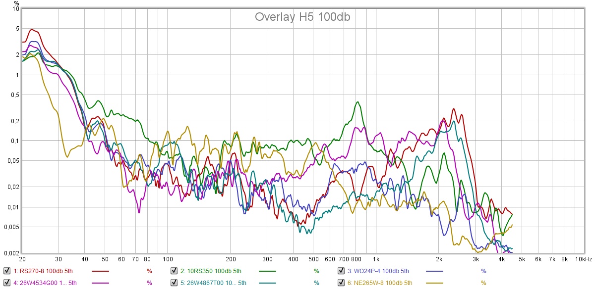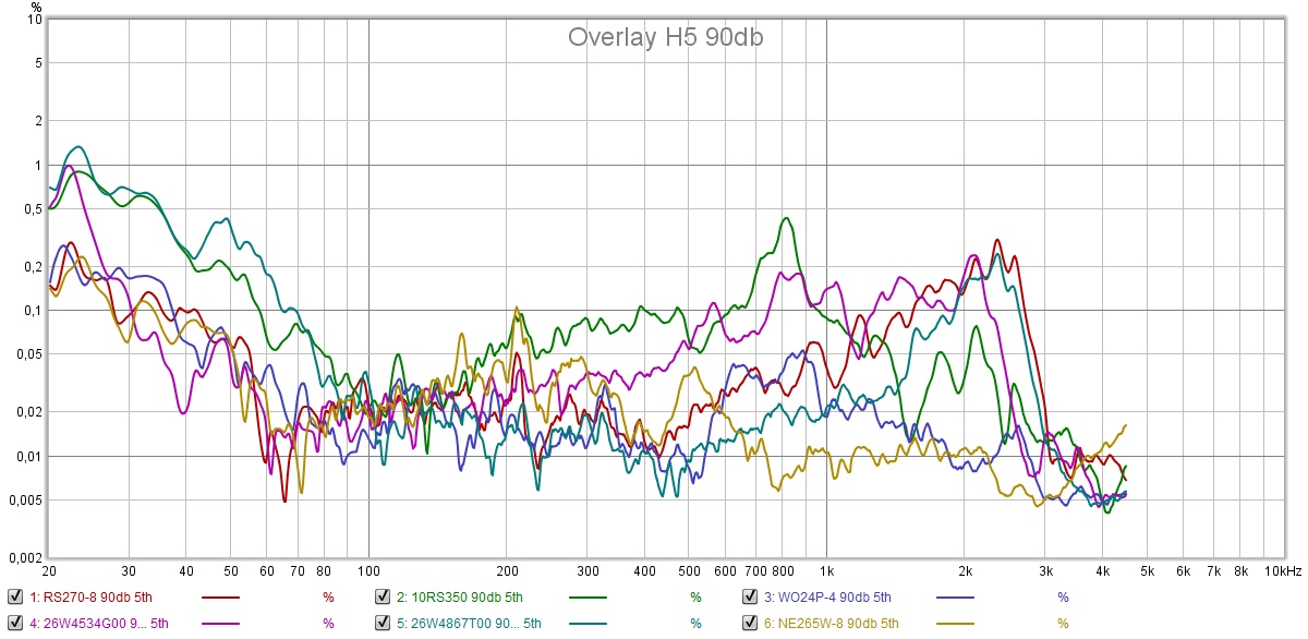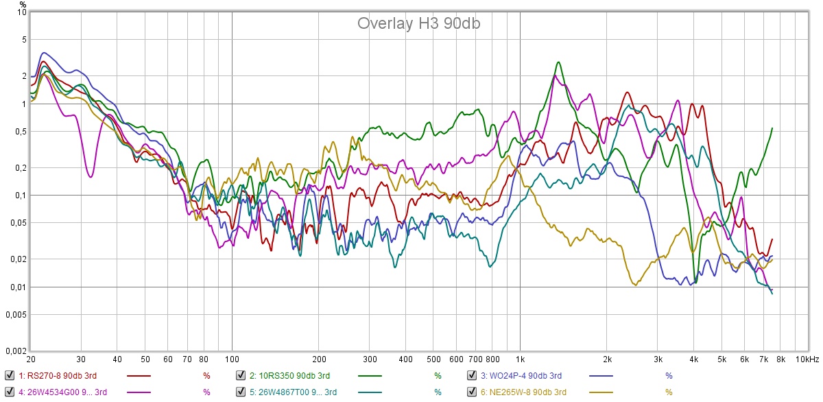 Interesting the Satori and Revelator having well behaved harmonic distortion, didn’t do well in intermodulation department. Now how would this translate to tonal quality – should we pay more attention to intermodulation distortions than harmonic content. Interesting I have some SB17NRXC drivers that play very different from each other and in Clio I can’t see that much of difference in freq resp and harm dist, so most likely the intermodulation dist have different content between the two.